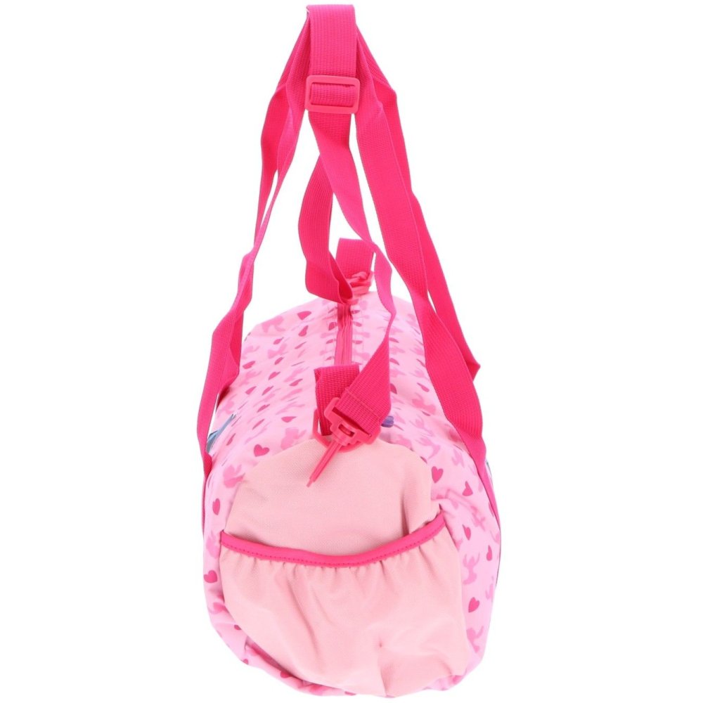 Dievčenská športová taška s obrázkom Stitcha z obľúbeného animovaného seriálu Lilo a Stitch. Má jednu priestrannú hlavnú priehradku na zips, bočné vrecká na drobnosti a nastaviteľný ramenný popruh. Vďaka ušiam ju možno nosiť aj v ruke. Rozmery 38 × 22 × 18 cm.