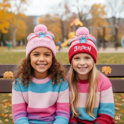 Detská zimná čiapka Lilo & Stitch. Vyrobená z hrejivého akrylového úpletu s nášivkou ...