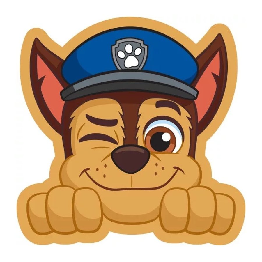 Tvarovaný 3D vankúšik Tlapková patrola - Paw Patrol - v tvare obľúbeného člena party labiek policajta Chase. Tento vankúšik poteší každého malého fanúšika šteniat z Labkovej patroly. Jeho rozmery sú cca 36 x 40 cm.