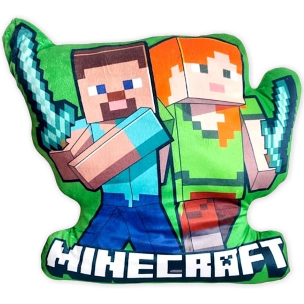 Tvarovaný 3D vankúšik Minecraft s motívom obľúbených postáv Alex a Steve je vyrobený z jemného mikroplyšu. Prednú stranu zdobí pútavý obrázok inšpirovaný svetom Minecraftu, zatiaľ čo zadná strana je jednofarebná zelená. Ideálny doplnok pre fanúšikov hry domov aj na cesty.