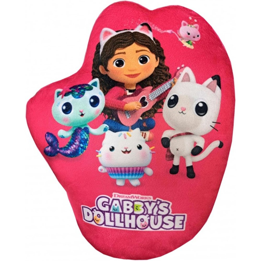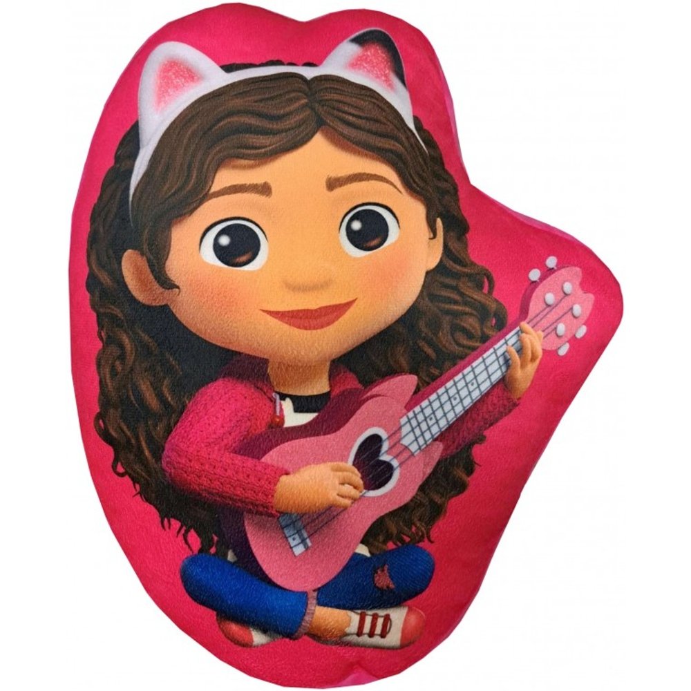 Tvarovaný 3D vankúšik Gabby's Dollhouse. Jednu stranu zdobí veselý obrázok Gábinky s ukulele, na druhej je Gábi so svojimi mačacími priateľmi. Povrch je z jemného mikroflísu, ktorý je príjemný na dotyk. Vankúš má rozmery cca 38×32 cm a je ideálny na maznanie aj ako dekorácia do detskej izbičky.