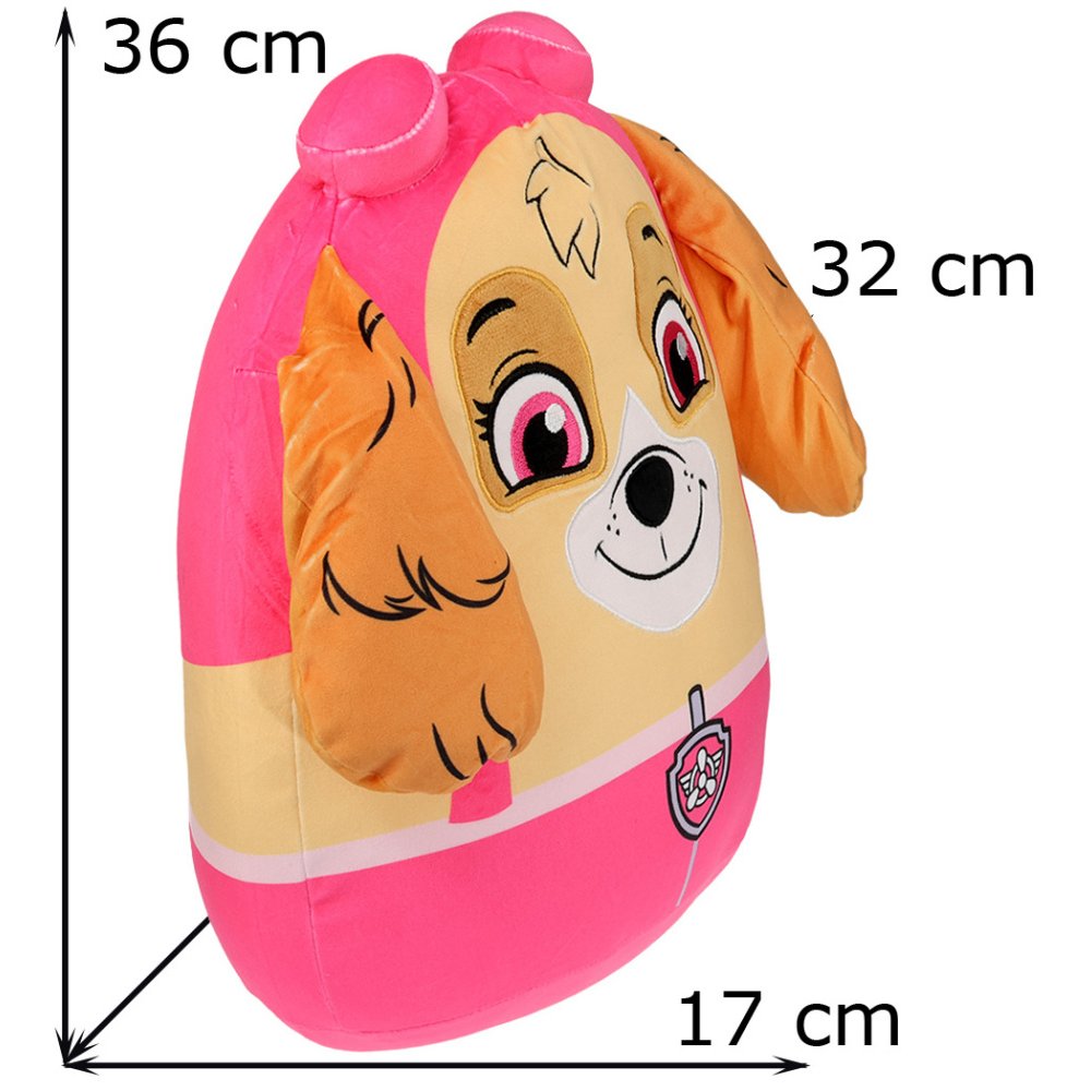 Tvarovaný 3D squish vankúšik Paw Patrol - motív Skye. Super mäkký, elastický a stláčací plyšový vankúšik na mojkanie, hranie alebo ako roztomilá dekorácia do detskej izbičky. Rozmery sú cca 36×32×17 cm.