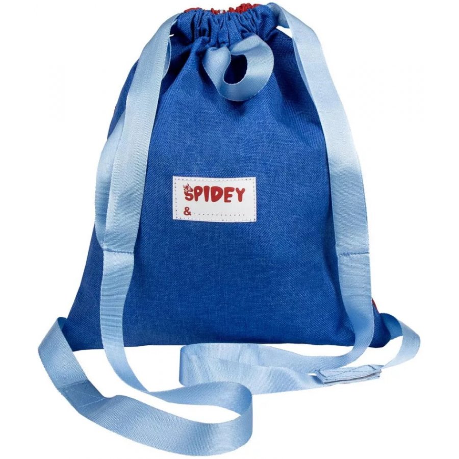 Športový vak na chrbát pre deti s motívom detskej verzie superhrdinu Spider-Mana, malého Spidey. Prednú stranu zdobí portrét tohto komiksového a seriálového superhrdinu, zadná je modrá s nášivkou pre meno. Silnejšie popruhy zaisťujú pohodlné nosenie.