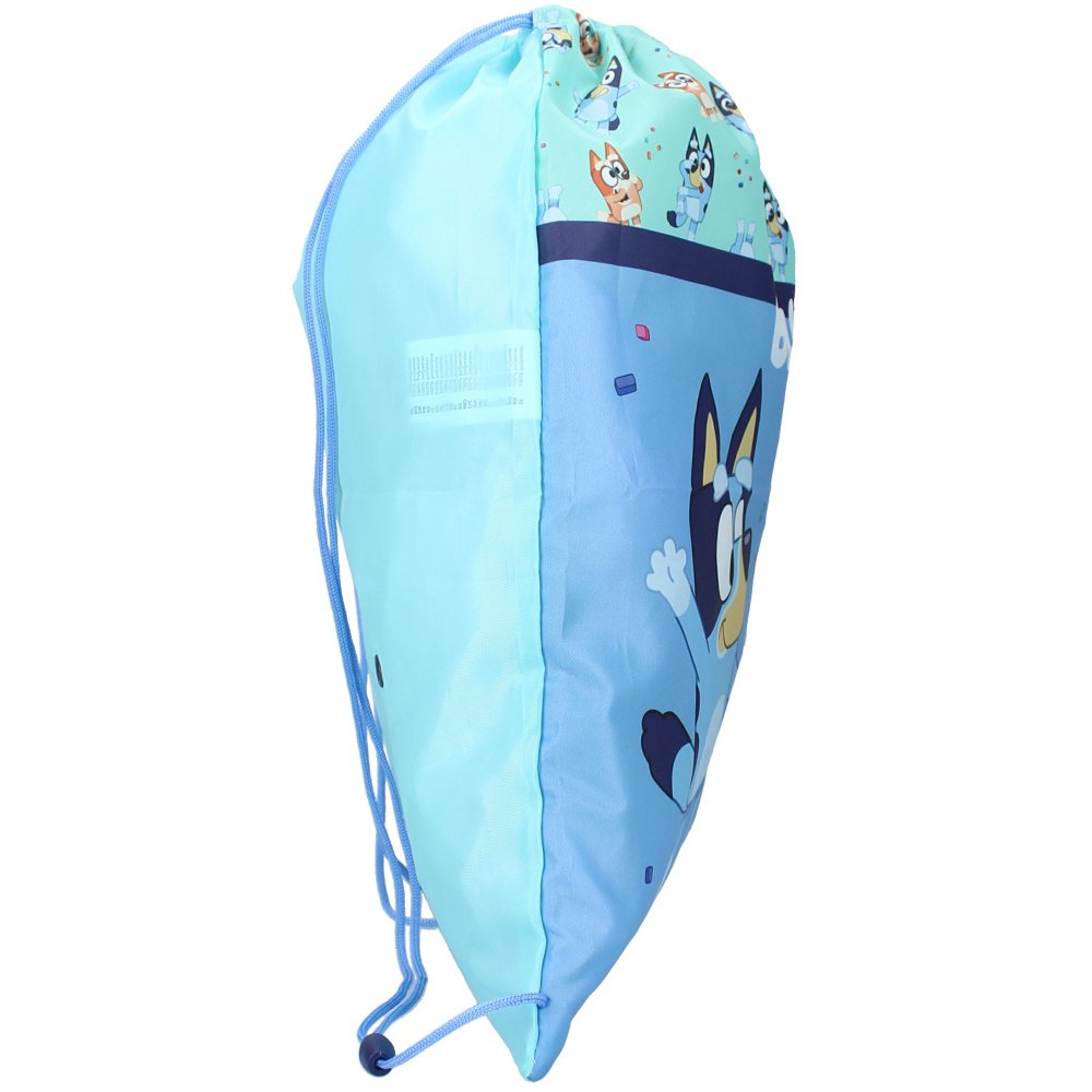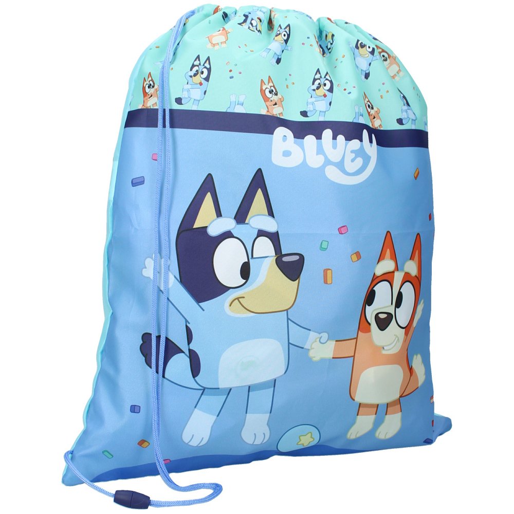 Športový vak na chrbát Bluey s obrázkom fenky Bluey a jej sestry Bingo. Ideálny aj ako vrecúško na prezuvky, veci na telesnú výchovu alebo výtvarnú výchovu. Rozmery cca 44 x 36 cm, objem cca 1,6 l.