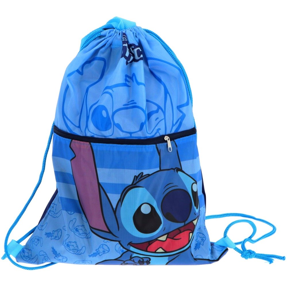 Detský vak na chrbát s motívom z obľúbeného seriálu Lilo & Stitch, so sťahovaním na šnúrky a praktickým predným vreckom na zips. Možno ho nosiť na chrbte aj v ruke vďaka dvom uškám. Ideálny na telesnú výchovu, prezuvky, výtvarnú výchovu aj výlety. Rozmer cca 44 × 34 cm.
