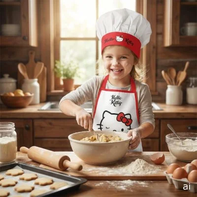 Praktická súprava zástery a kuchárskej čiapky s motívom Hello Kitty. Skvele sa hodí do kuchyne, ...